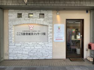 静岡市葵区鷹匠の「こころ接骨・鍼灸マッサージ院」様。テーマカラーのピンクを、高級住宅街の雰囲気に合わせ、落ち着いた色味にしました。ライトで看板を照らし、パッと目に留まる外装になっています。