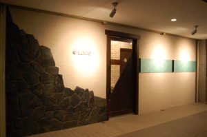 ビューティーサロン「LAGE静岡呉服町店」様。住宅にあるようなフローリングを使用した内装に合わせ、外観にも木を使い、手作り感を演出しました。お客さんが家に帰ったようにくつろげる雰囲気を、入り口から意識しています。