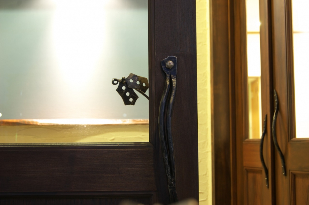 取っ手にはアイアン(錬鉄)を使い、職人の手作り感を演出。入口から温かみのある空間作りを意識しました。