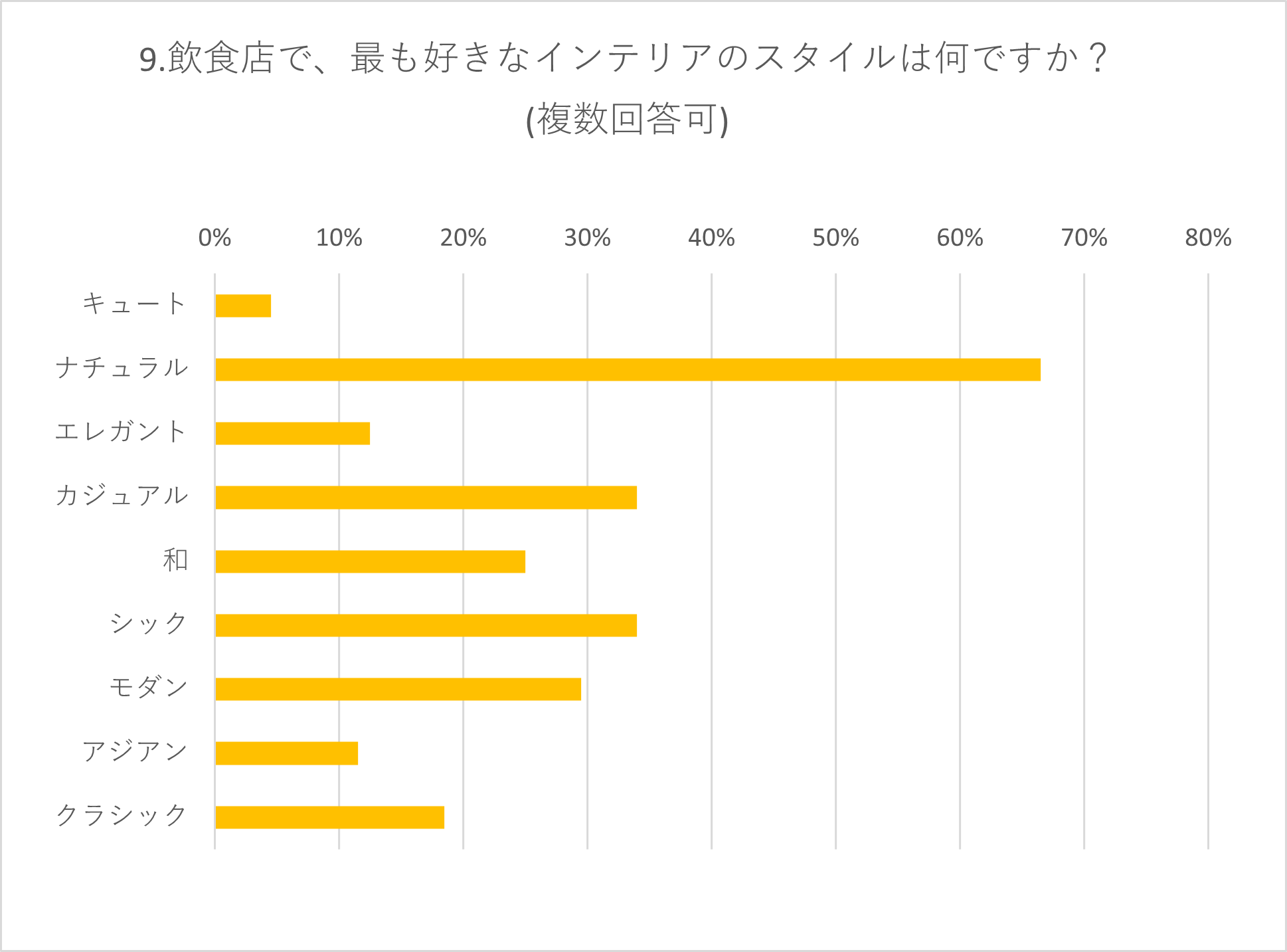 ④飲食店で最も人気のインテリアのスタイルは、「ナチュラル」