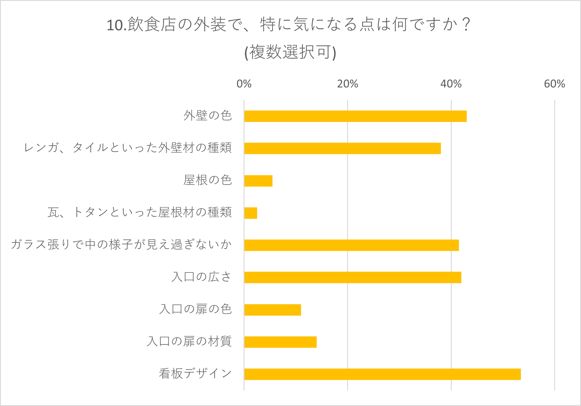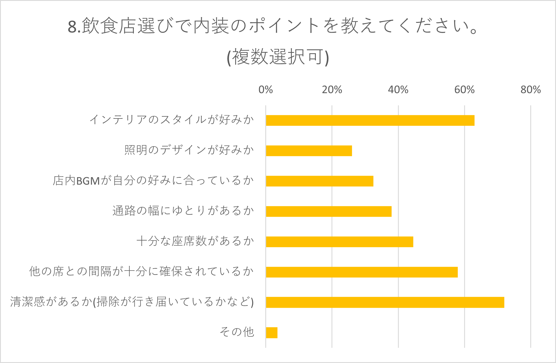本アンケートは、飲食店を利用するお客さんが店舗の内装や外装の見た目のどんな点を特に気にしているのかを明らかにし、オーナー様へのより最適なご提案に繋げることを目的としています。