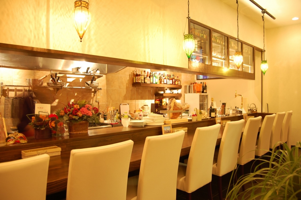 - 厨房からでも店内全体が見渡せるレイアウトに