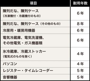 同じ陳列ケースでも、冷凍・冷蔵機能の有無によって耐用年数が変わります。自店が使っている器具がどの項目に当てはまるか、確認しておきましょう。