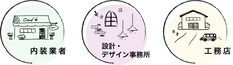 内装業者、工務店、設計・デザイン事務所の3区分に加え、同一区分の業者でも会社によって特性は様々です。