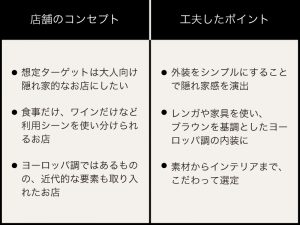 オーナー様が考えていたお店のコンセプトは以下になります。