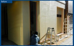 本施工は、居抜き物件を利用した内容でした。もともとは二階まで同じ店舗だった物件を分割し、一階部分を新しい店舗として施工することとなりました。