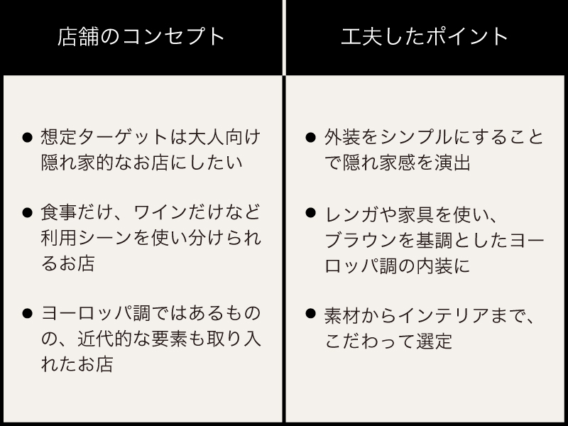 オーナー様が考えていたお店のコンセプトは以下になります。