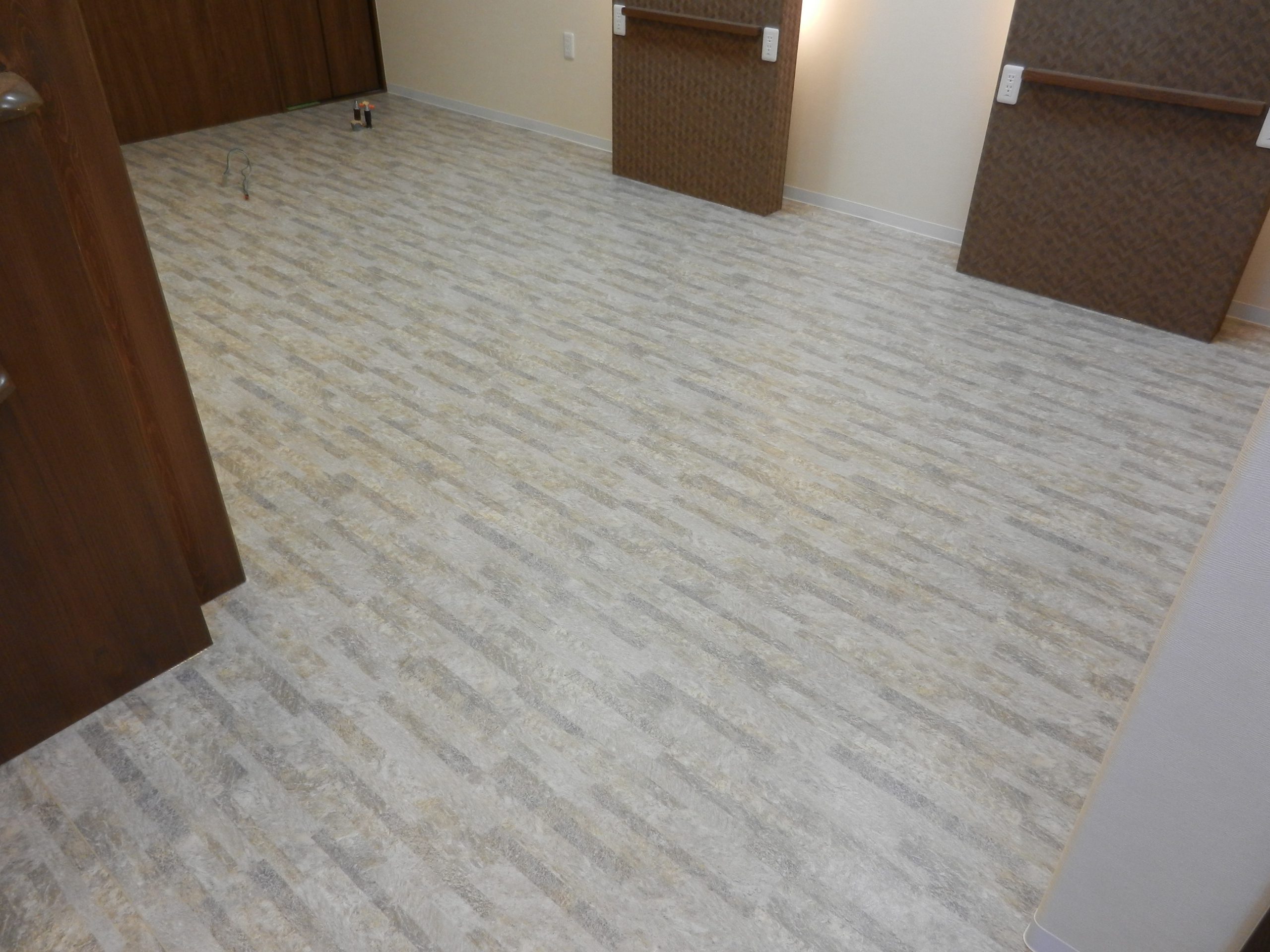 - 床には少し柄が入ったものを取り入れ、清潔感のある空間に