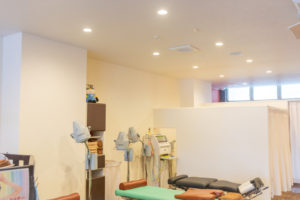 「こころ接骨鍼灸マッサージ院」様には、鍼灸院と治療院という二つの役割があり、それぞれの施術場所は全く別の空間として区切りました。