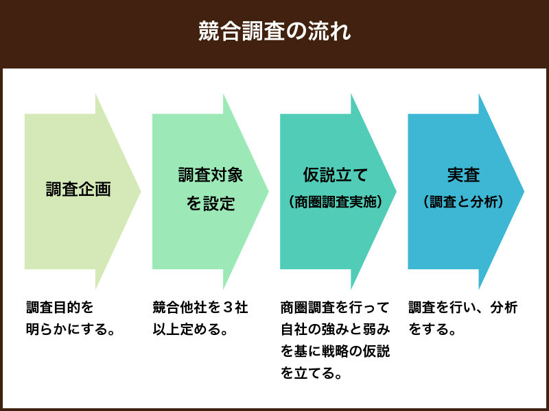 競合調査とは、同じ市場や顧客をターゲットにする競合を自分のお店と比較し、ビジョンやサービスの差別化を図る調査です。