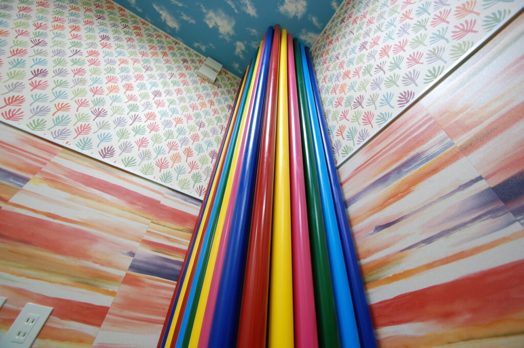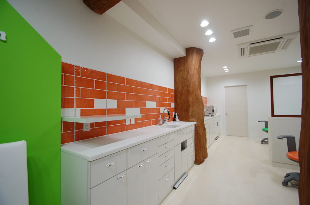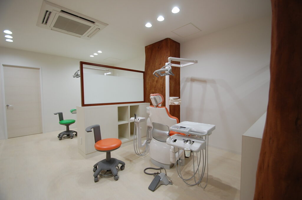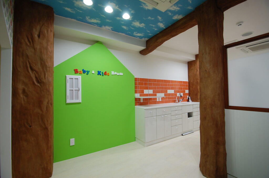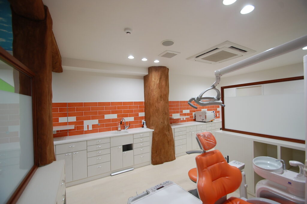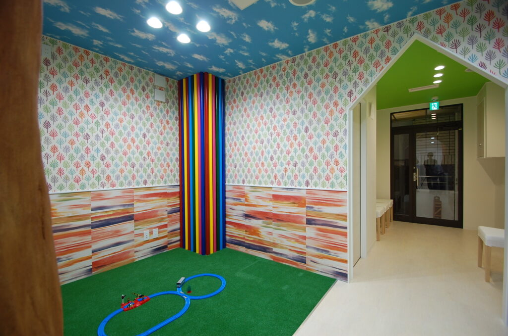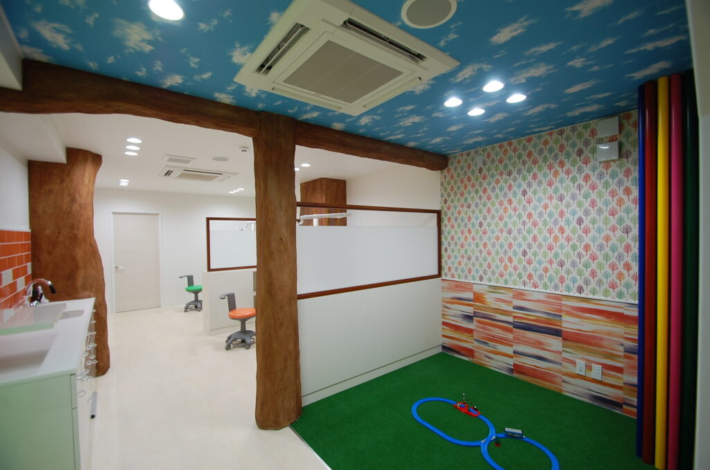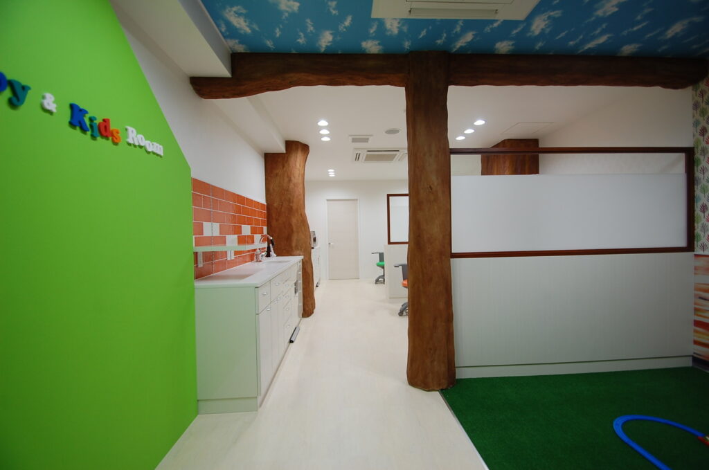 キッズルームのあるメンテナンスフロアの増築です。歯医者に通うのがワクワクする空間を創ろうと思い、柱や梁の造形や、素材の配色などデザインを考え、テーマパークの様な空間を造ることができました。小さいな子供も、楽しく歯医者へ通えるといいなと思います♪